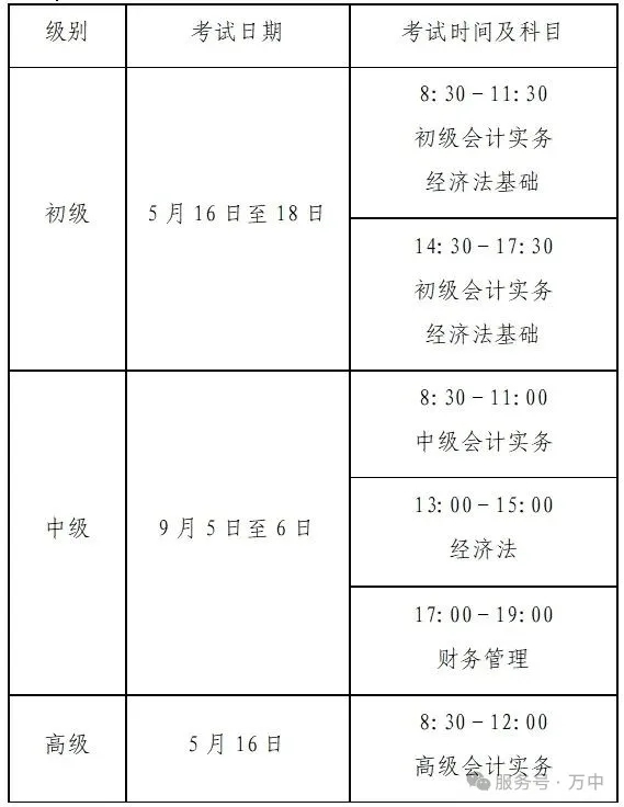 (二)初级和高级会计资格考试考务日程安排